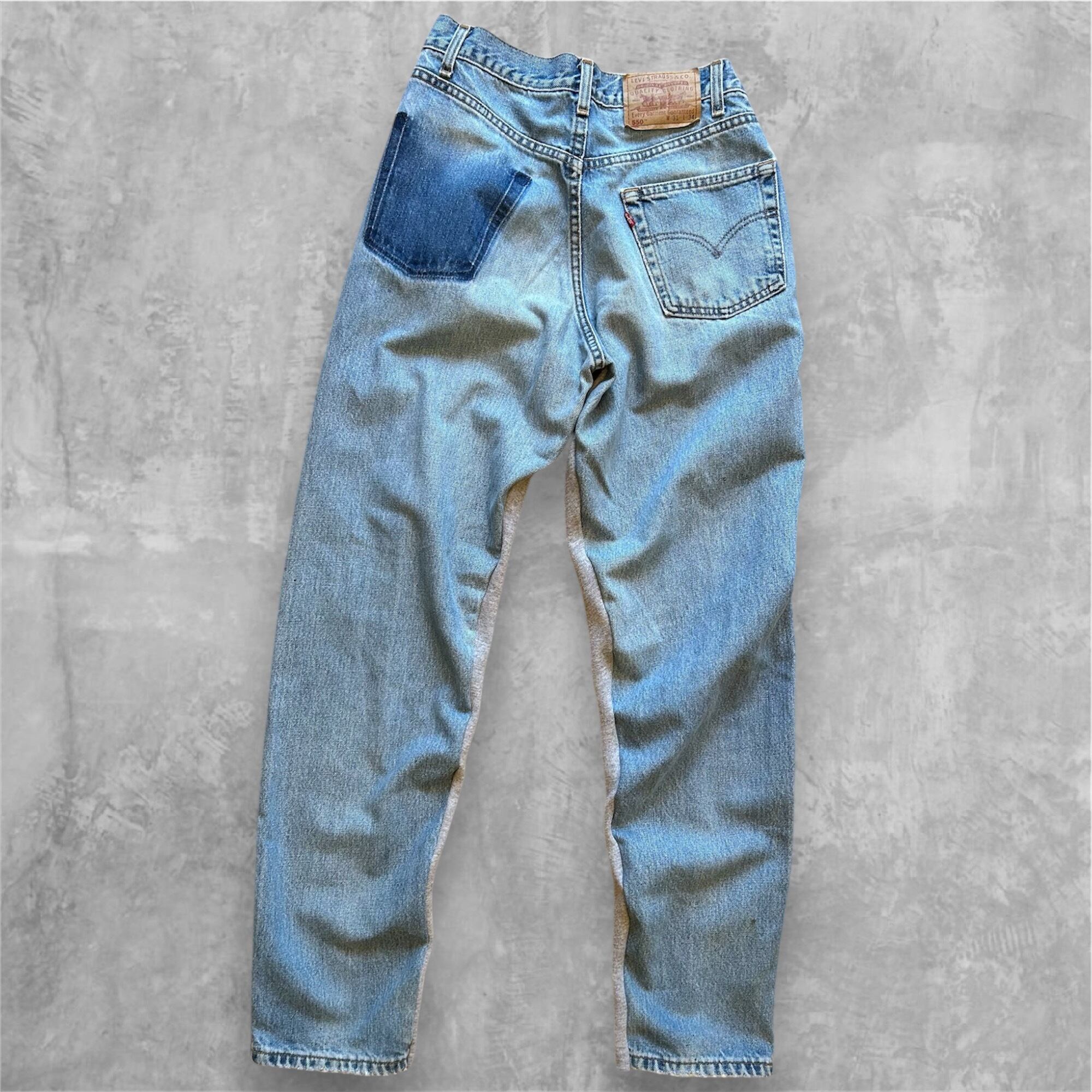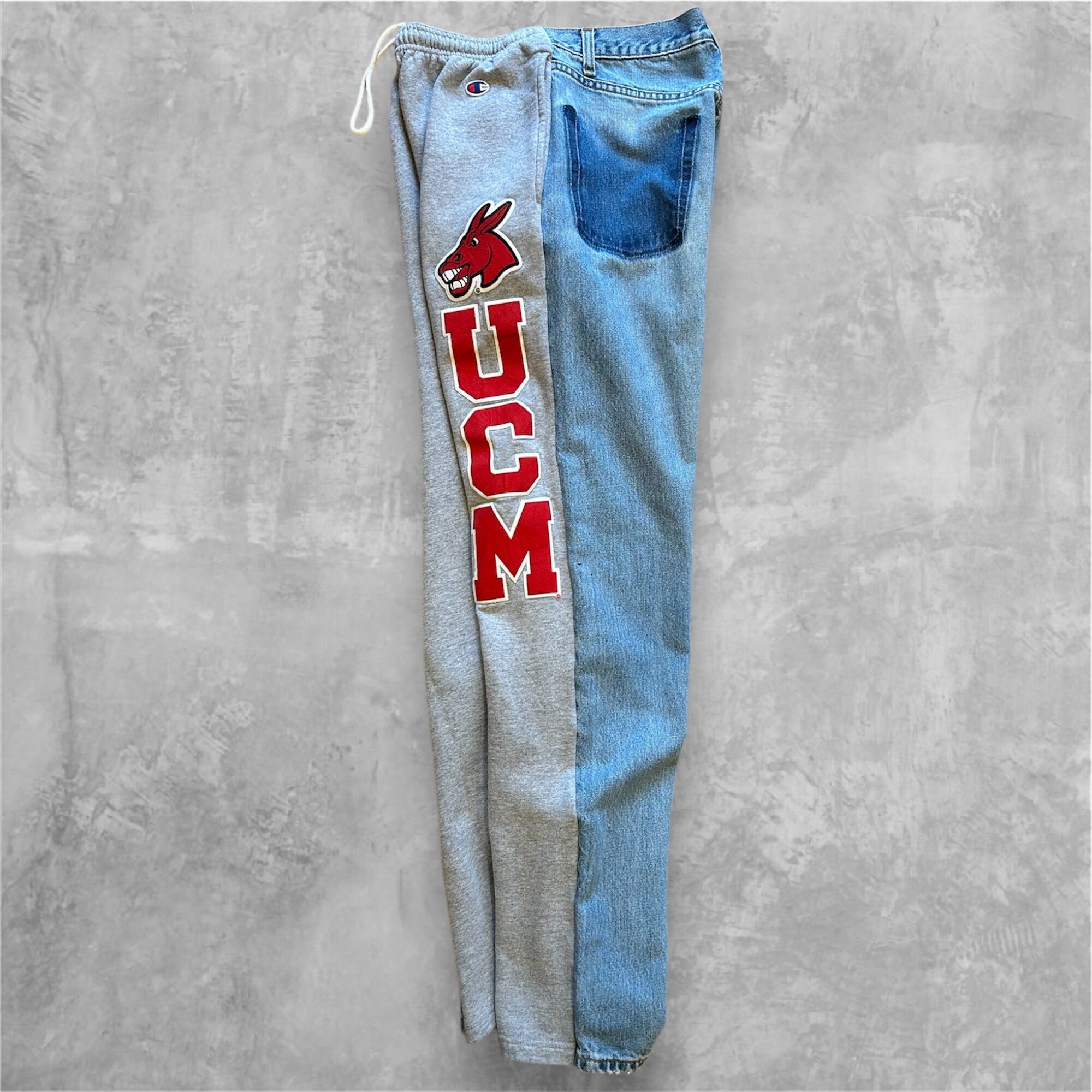 ユーズドのカレッジスウェット チャンピオン&リーバイス デニムリメイクパンツ