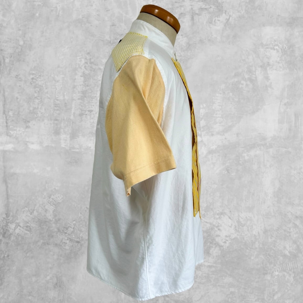 フロントボタン側に縦に襟を縫い付け装飾しました