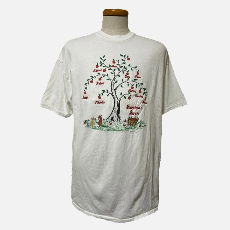 【Used】90s USA ボタニカル 刺繍プリントTシャツ
