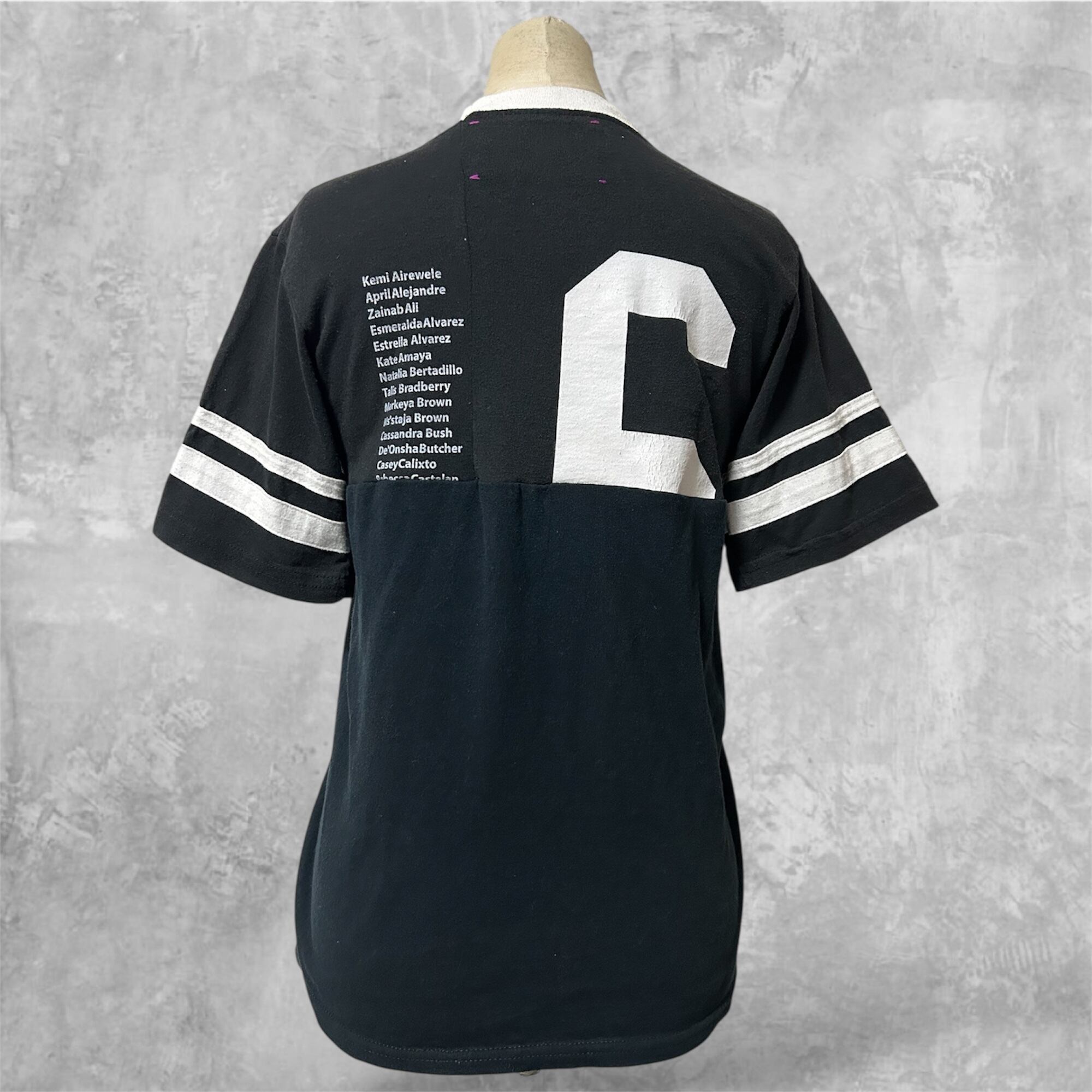 つなぎ合わせたリメイクTシャツです。