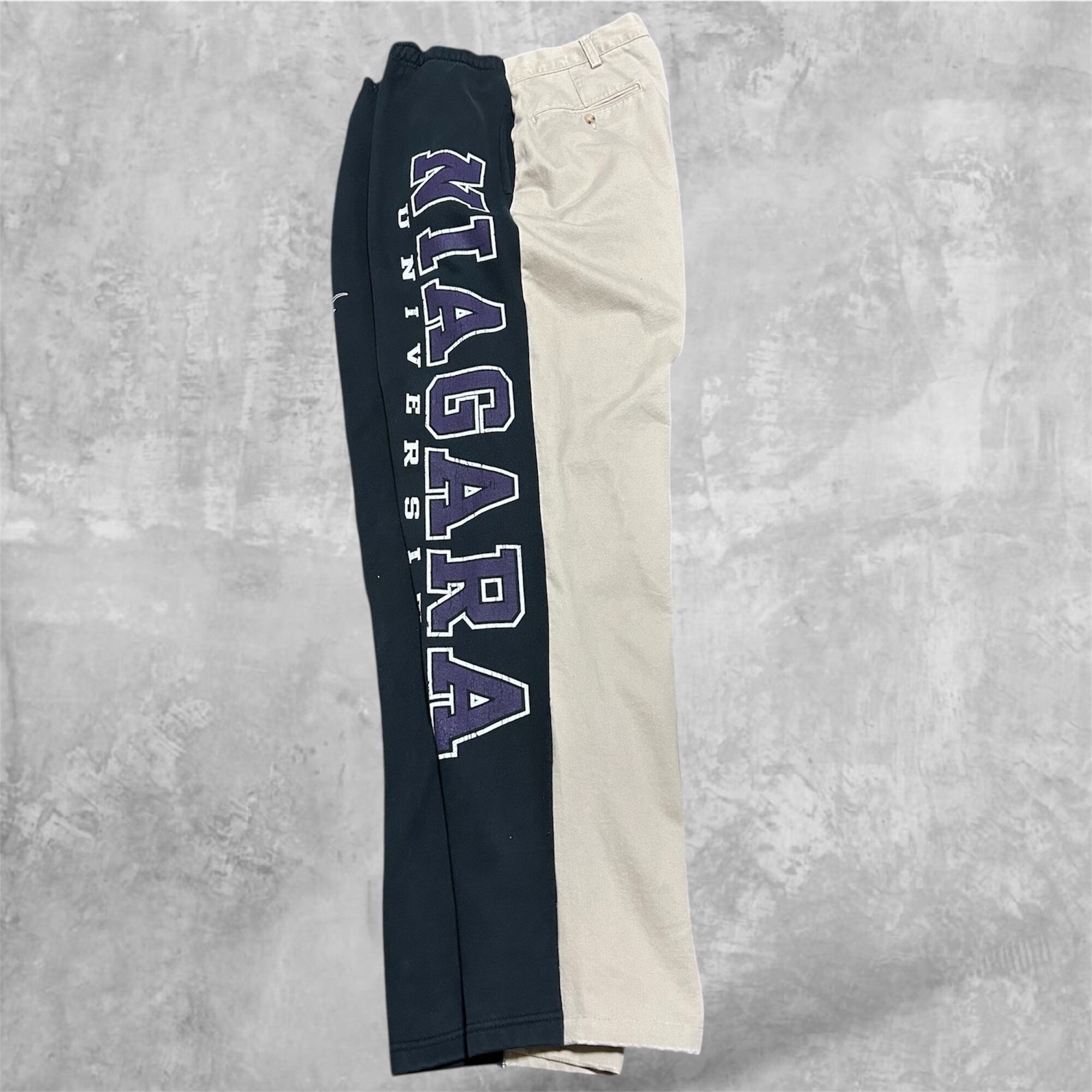 ブラックカラーのUSAカレッジスウェット組合せたリメイクパンツです。
