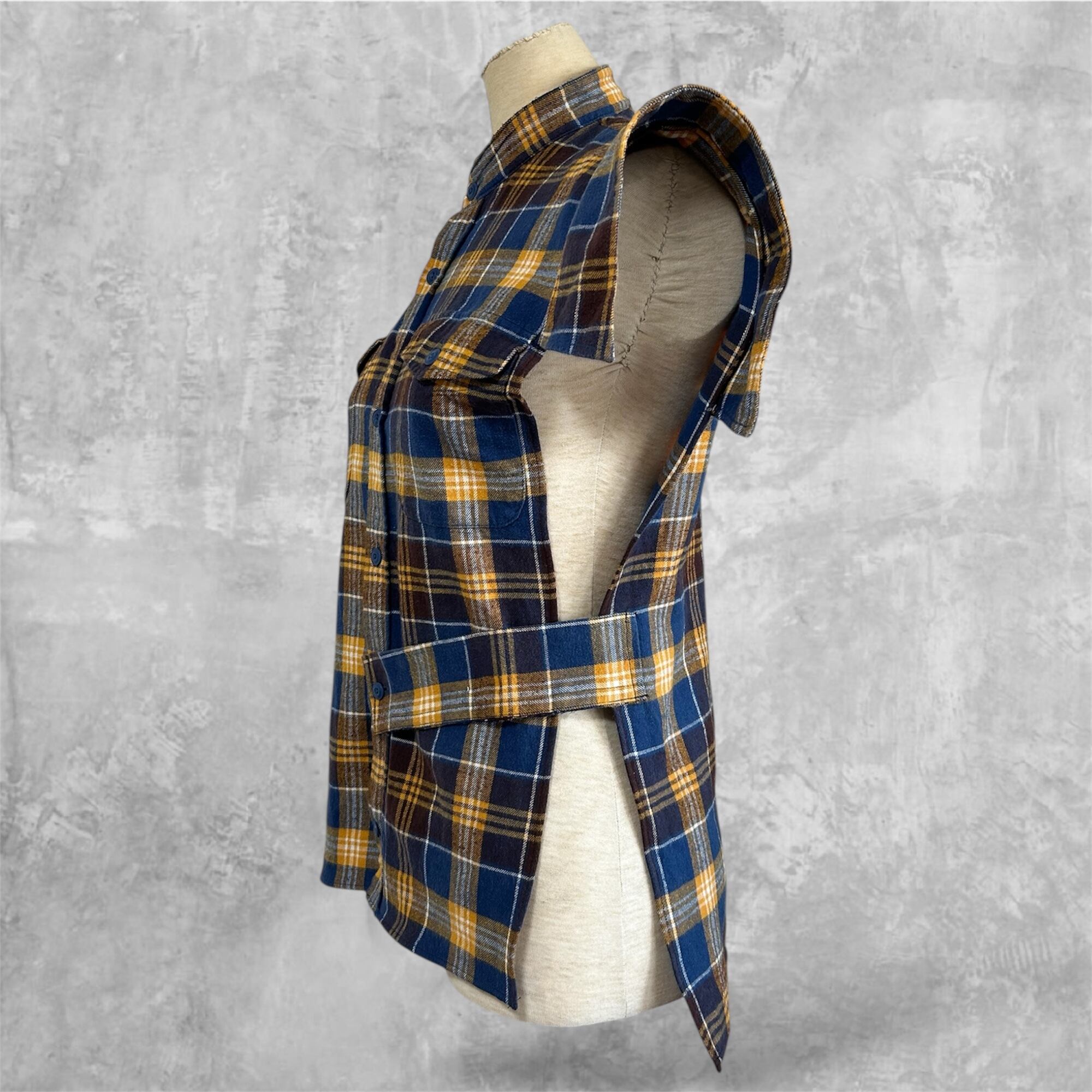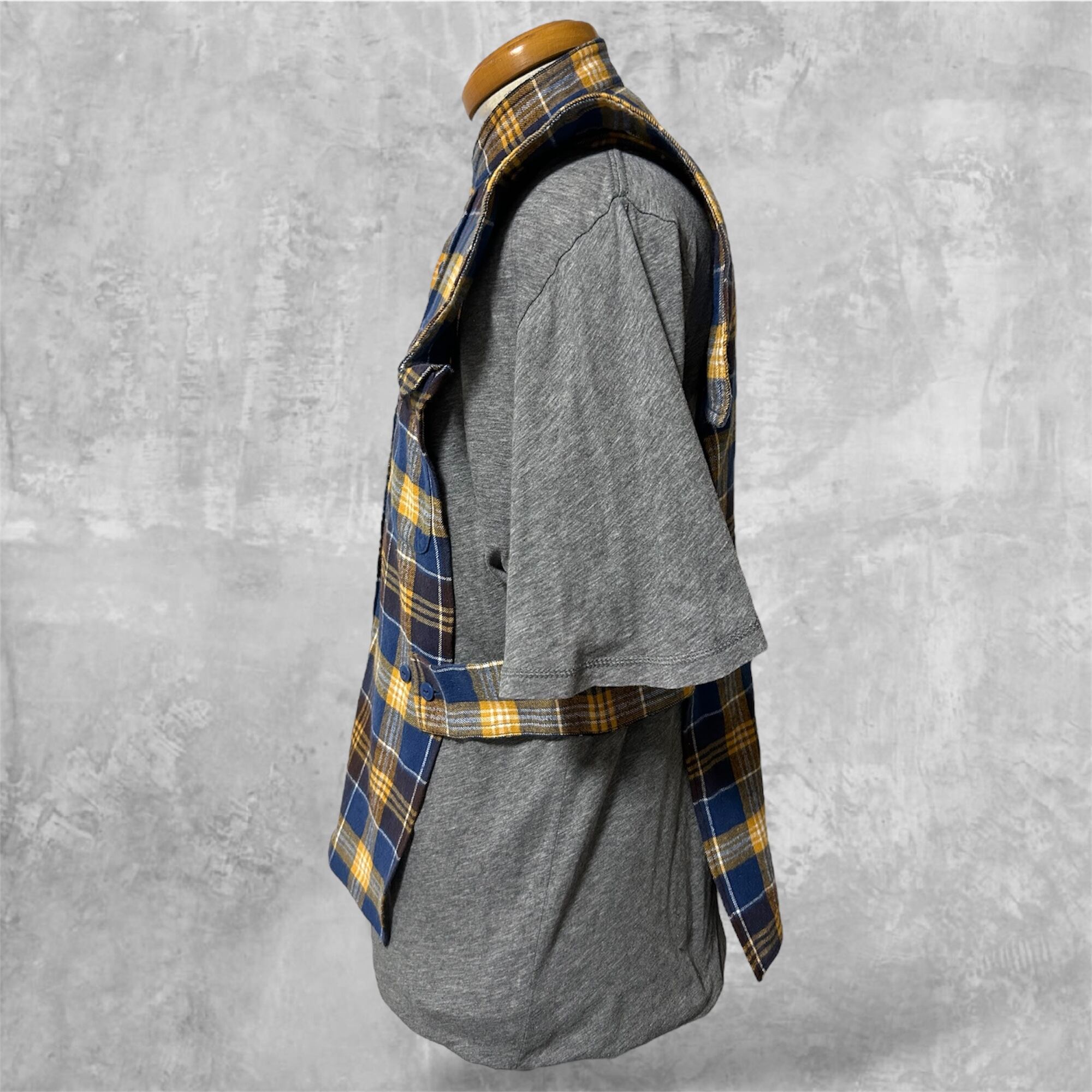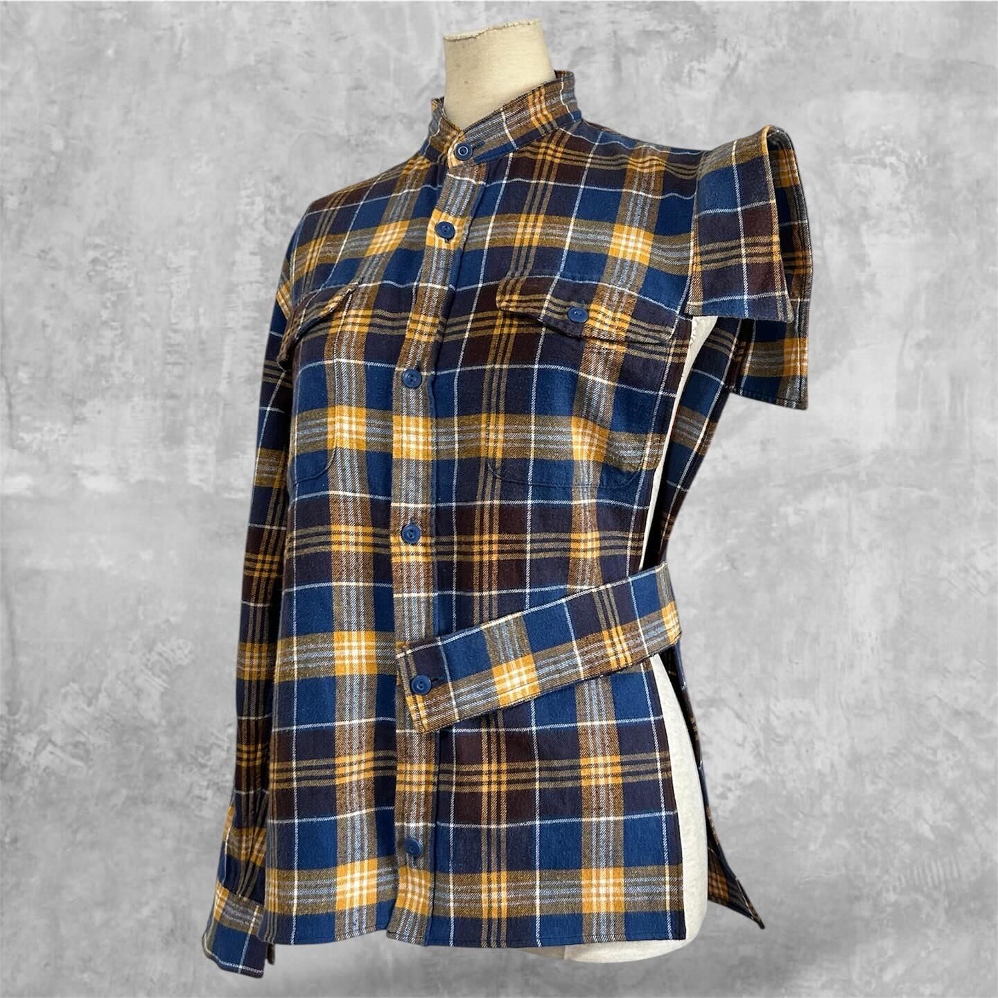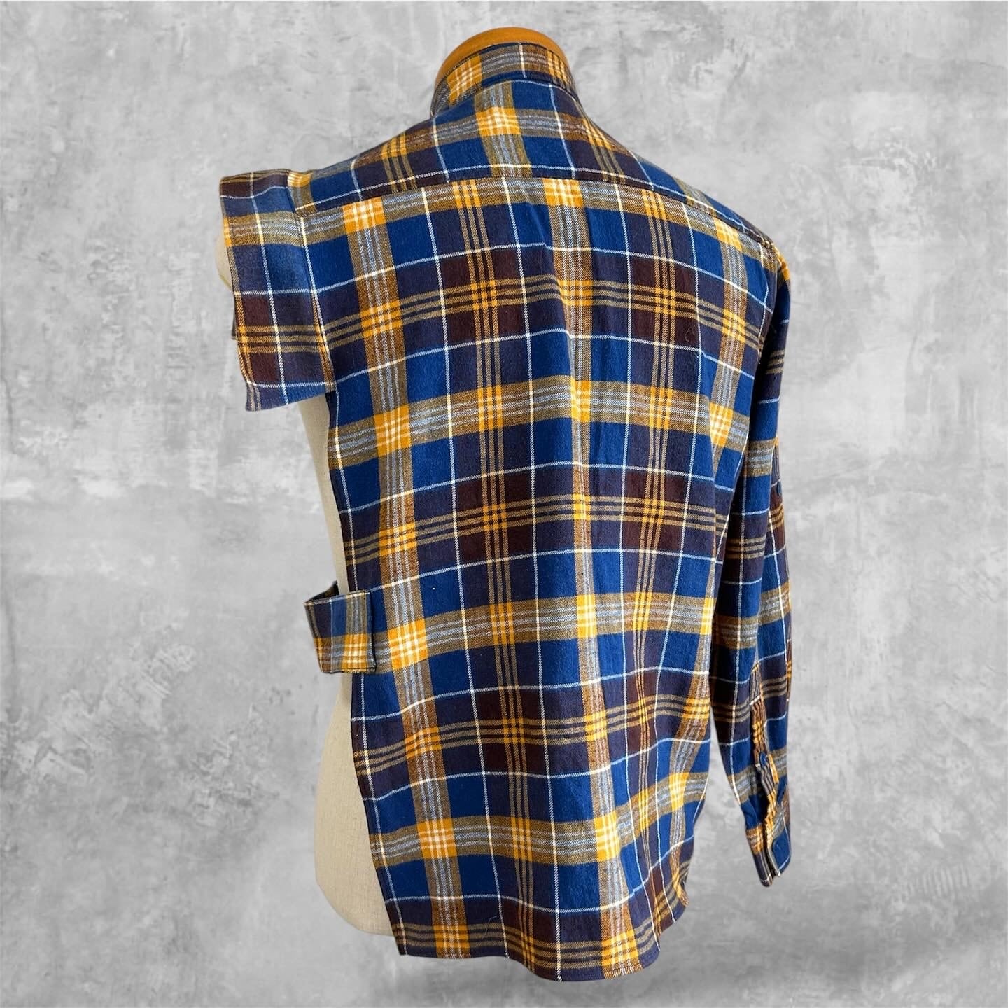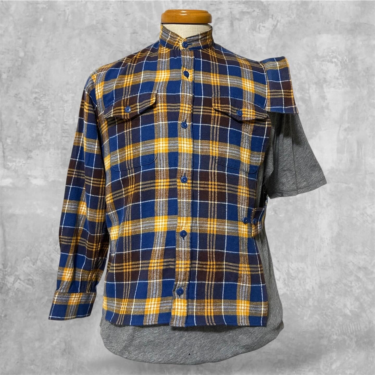 ネイビーブルーとオレンジカラーのチェックシャツ