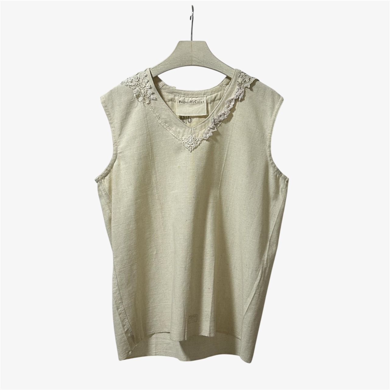 襟周りにぐるりと幾つかのレースを組合せて少し